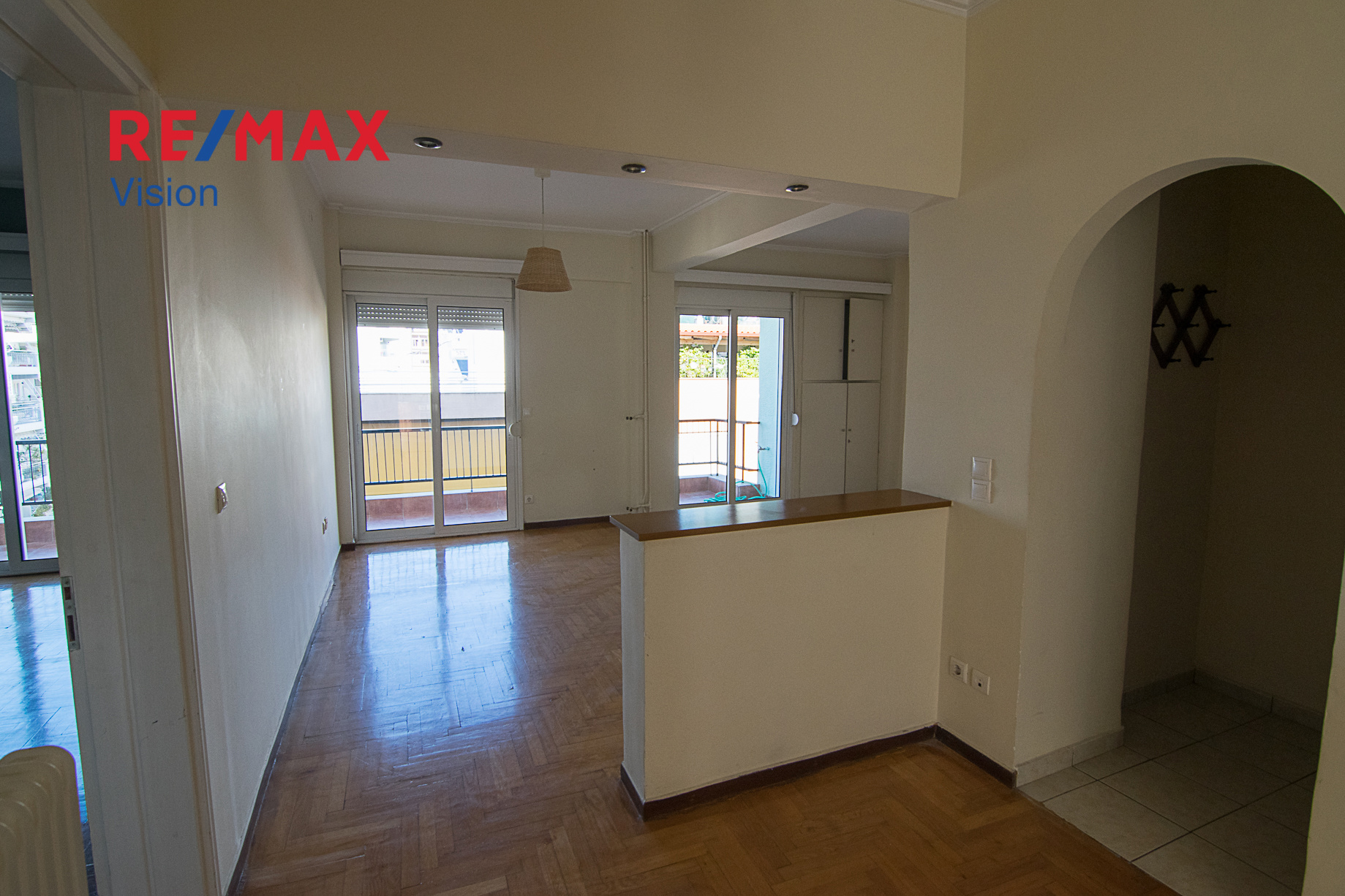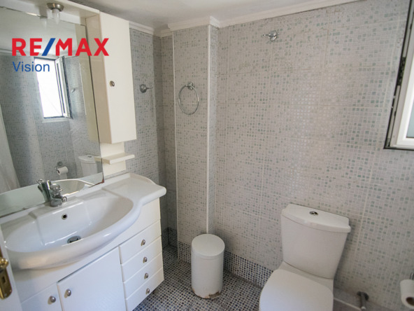 Patra-Center: Bright and airy 96 sq.m. apartment for sale on the 3rd floor. It consists of a kitchen, bathroom, two spacious bedrooms, and a living room. Built in 1970 and renovated in 2014, it features autonomous oil heating, air conditioning, aluminum window frames, a solar water heater, wooden and tiled floors, and a security door. The construction is of high quality, and the apartment is located in the heart of the city, close to public transportation, markets, services, shops, and schools. This property is ideal for families, medical offices, students, and investment purposes, as it can be easily converted into two one-bedroom apartments.