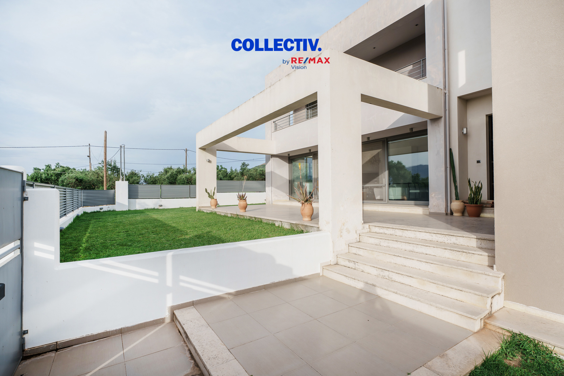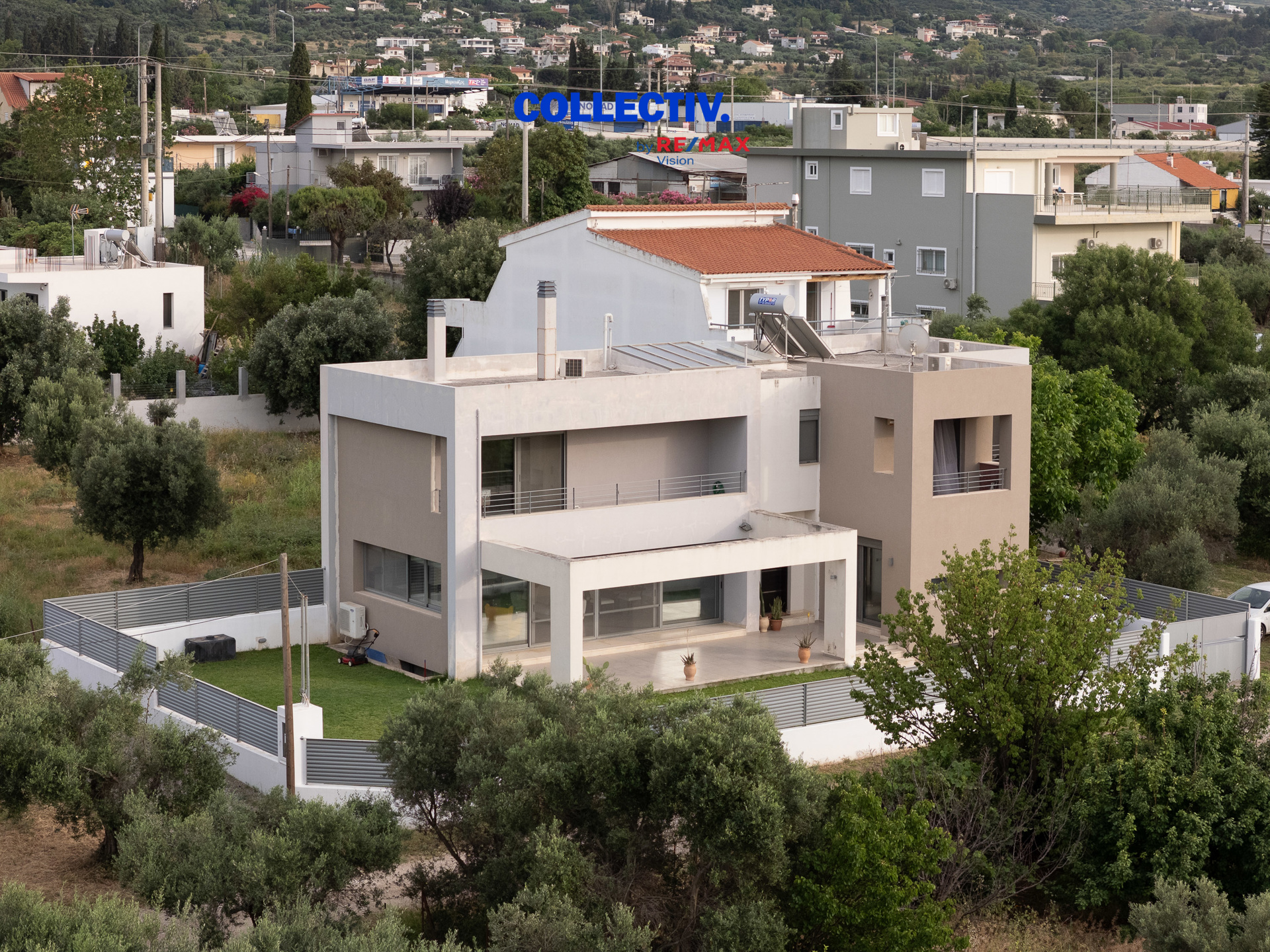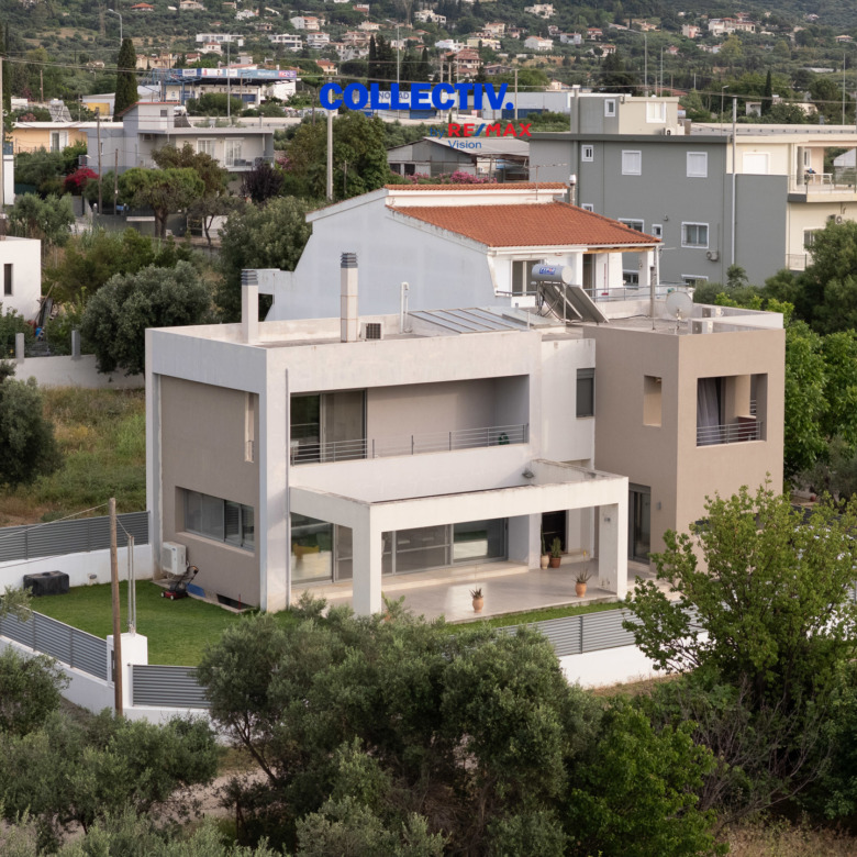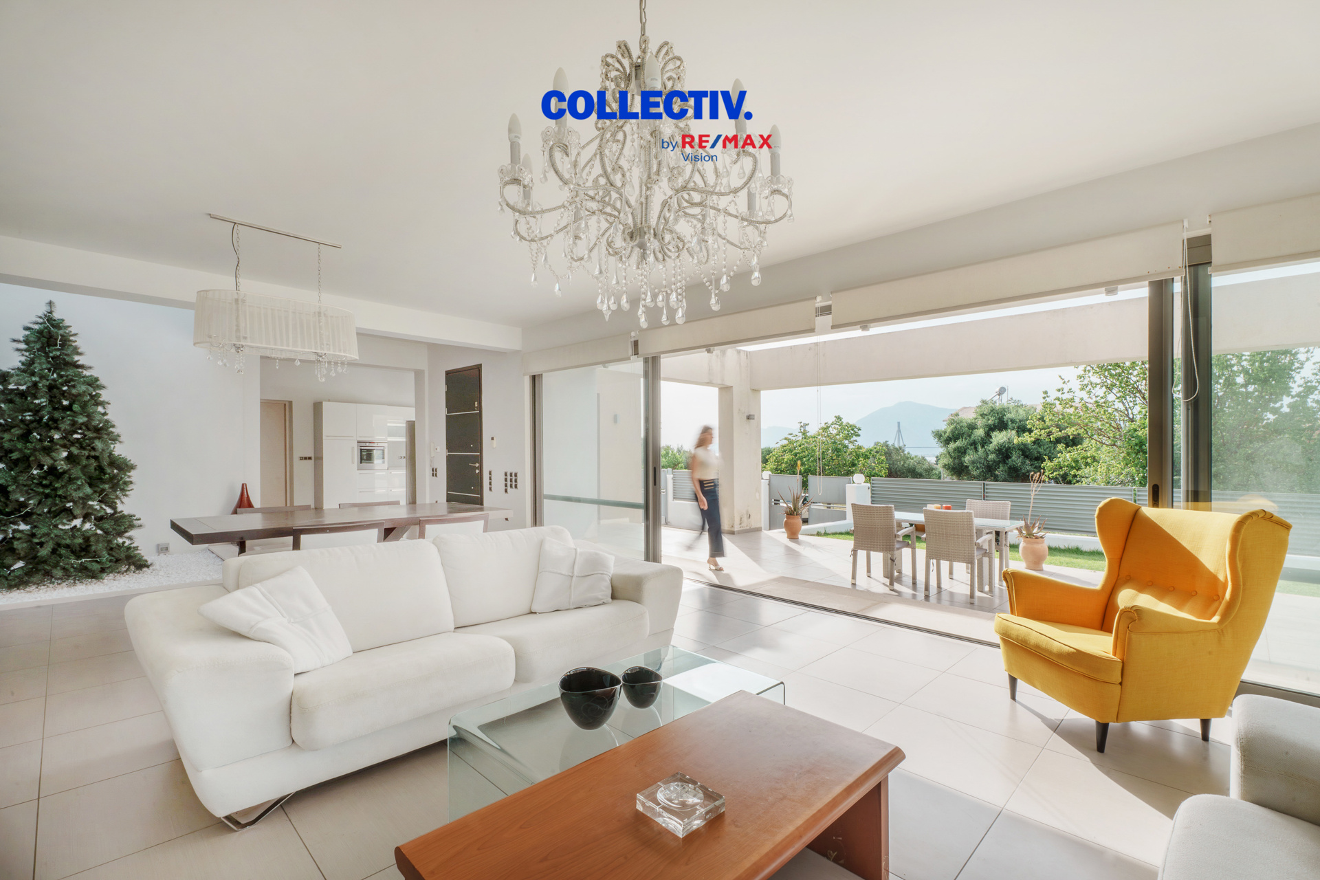 Μονοκατοικία προς πώληση – Άνεση, κομψότητα & μοναδική θέα χαρακτηρίζουν αυτή την εξαιρετική κατοικία, κατασκευασμένη το 2006, προσφέρει 225 τ.μ. κύριων χώρων και 160 τ.μ. πλήρως διαμορφωμένου υπόγειου, εξασφαλίζοντας άνεση και λειτουργικότητα σε κάθε επίπεδο. Κατασκευασμένη σε οικόπεδο 450 τ.μ., διαθέτει όμορφα διαμορφωμένο κήπο και ιδιωτική θέση στάθμευσης.
