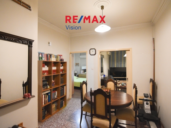 An 87 sq.m. apartment for sale in the center of Patras, located on the second floor of an apartment building, just 150 meters from Ypsila Alonia Square. The apartment consists of two bedrooms, a living room, a bathroom, a separate kitchen, and a storage room, while it also offers plenty of built-in storage space. It is bright, dual-aspect, and faces the front, with balconies equipped with awnings — one of which overlooks a central pedestrian street of Patras. The floors are a combination of tile and wood, and the window frames are aluminum. Heating is central, and there are also three inverter air conditioning units that fully cover both heating and cooling needs.