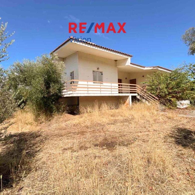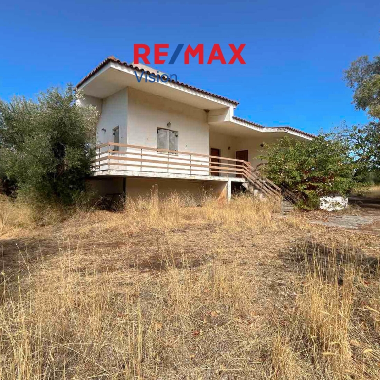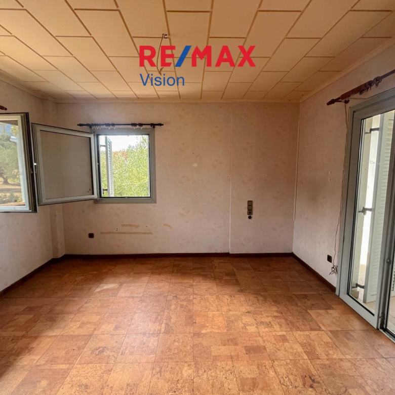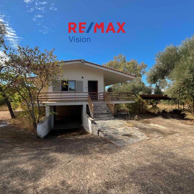 PATRAS – ANO PROASTIO AREA: Detached house of 91 sq.m. for sale on a plot of 5,320 sq.m., located in Ano Proastio, one of the quietest areas of Patras. The property consists of a living room, hall, corridor, kitchen, bathroom, two bedrooms, and a 30 sq.m. basement storage area.