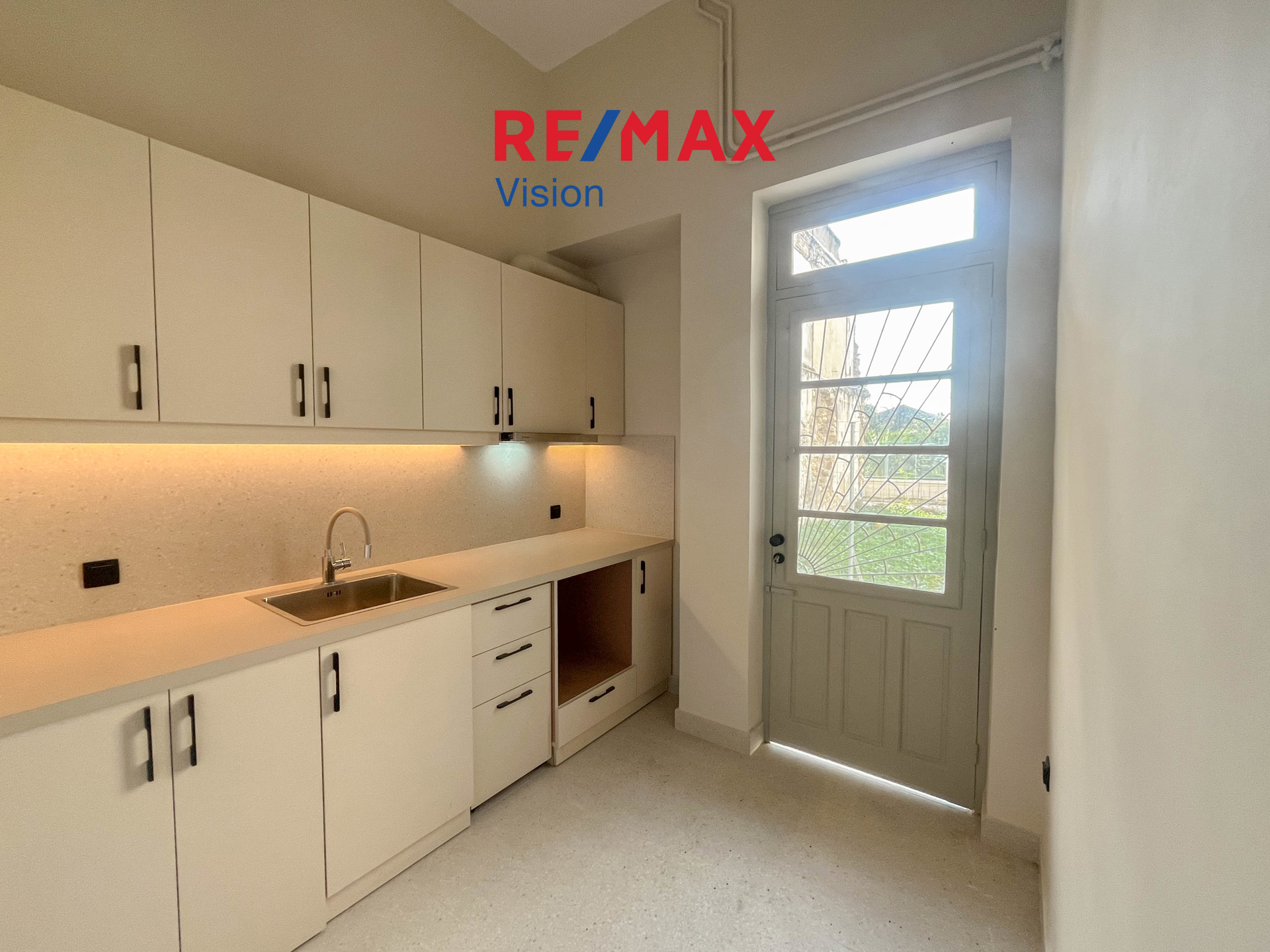 A bright, spacious, and airy ground-floor apartment of 110 sq.m., fully and luxuriously renovated in 2025 with a contemporary new-vintage design aesthetic. It consists of 3 bedrooms, a living room, a kitchen, 2 bathrooms, and a storage room.