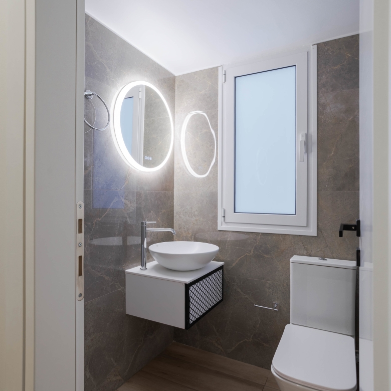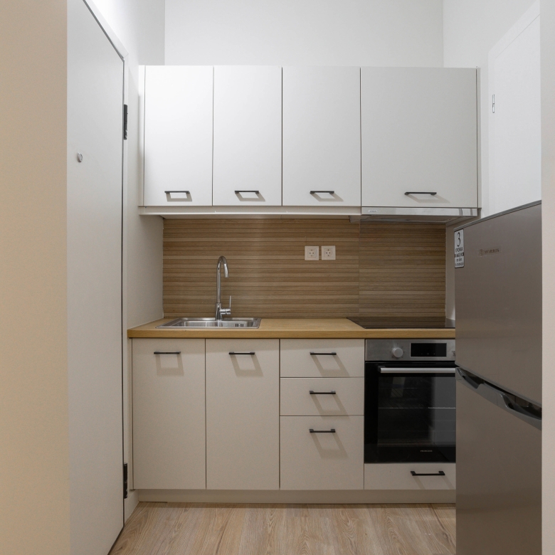The apartments were fully renovated recently, in September 2025, and each includes a bedroom, kitchen, living room, and bathroom. They feature laminate flooring, aluminum frames with double-glazed windows and screens, air conditioning for heating and cooling, video intercom, and a security door. They are fully furnished and equipped with all electrical appliances.