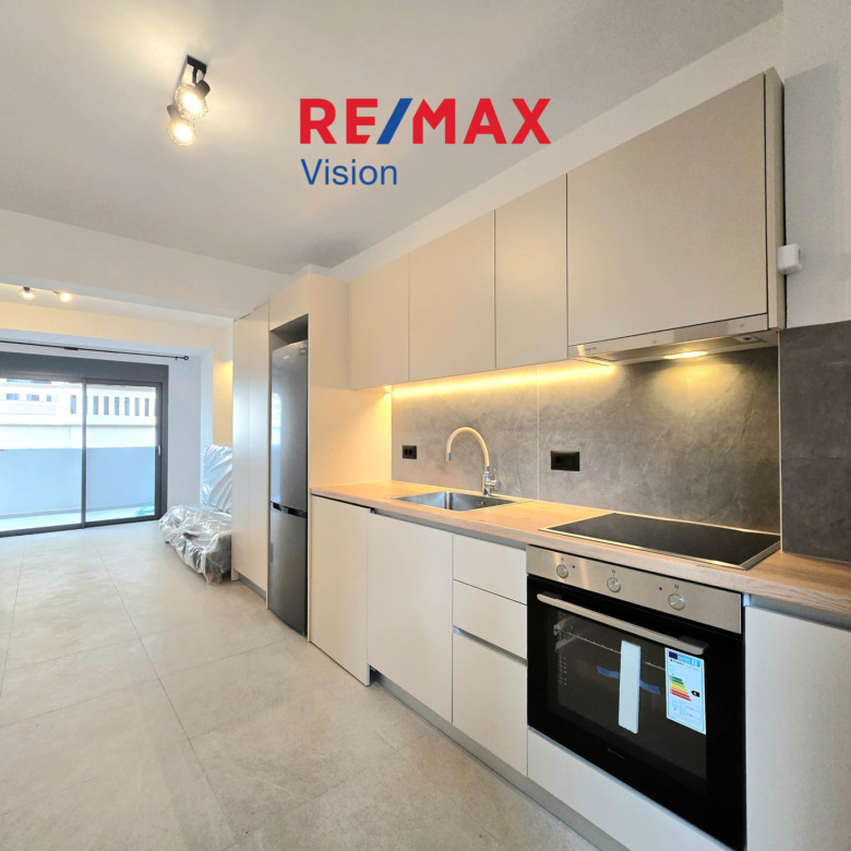 The apartment consists of 1 bedroom, 1 bathroom, and a kitchen, offering a modern and functional layout. It features autonomous heating, air conditioning, a solar water heater, aluminum window frames with double glazing, A++ energy efficiency certificate, and tiled floors, ensuring comfort and low energy consumption.