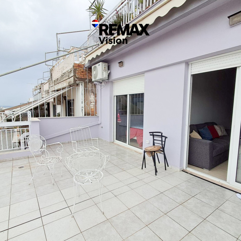 Το ακίνητο ξεχωρίζει για τη μεγάλη βεράντα με τέντα και την απεριόριστη θέα σε βουνό και θάλασσα, προσφέροντας ένα ευχάριστο περιβάλλον διαμονής. Είναι ανακαινισμένο, πλήρως επιπλωμένο και εξοπλισμένο με όλες τις απαραίτητες ηλεκτρικές συσκευές.