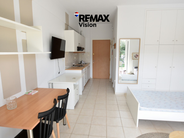 Ενοικιάζεται στούντιο–γκαρσονιέρα 35 τ.μ., κατασκευής 2001, στον 1ο όροφο διώροφης κατοικίας σε οικόπεδο 500 τ.μ., στην περιοχή της Αγυιάς στην Πάτρα. Ο χώρος είναι ενιαίος και περιλαμβάνει κουζίνα και καθιστικό.