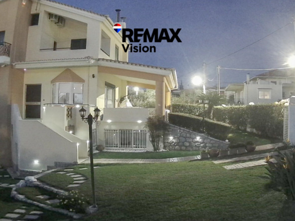 A fully furnished three-level detached house is available for sale, with a total area of 302 sq.m., situated on a 611 sq.m. plot, offering a beautiful view of the Gulf of Patras. The plot is divided into two separate titles with vertical ownership, providing additional investment potential.