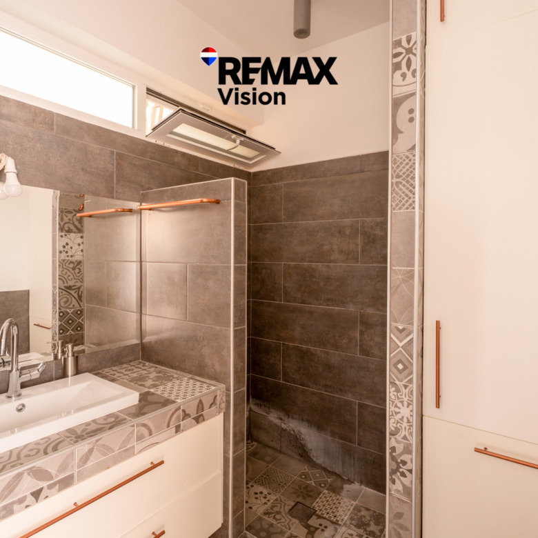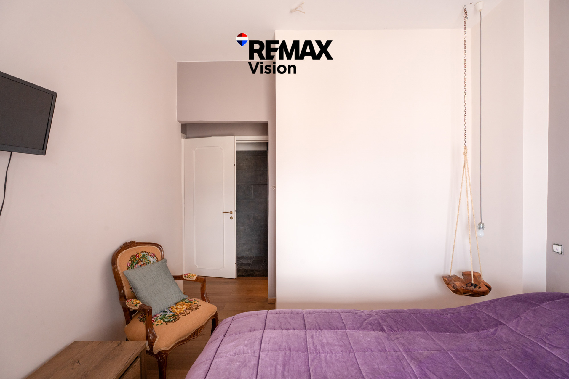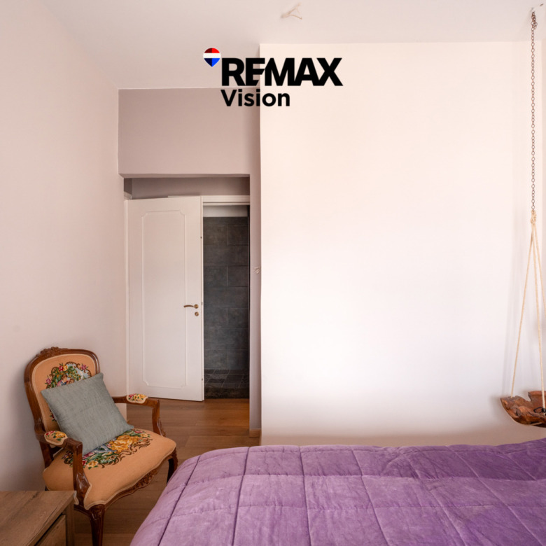 The quality of construction and renovation is of a high standard, including full replacement of plumbing with 100% antimicrobial copper piping, new electrical installations, marble flooring and brand-new laminate in the bedrooms, aluminum window frames with double glazing and insect screens, as well as a security door and alarm system. Additional features include an electric shutter (Somfy), two metal awnings on the main façade, and roller blinds on all openings.