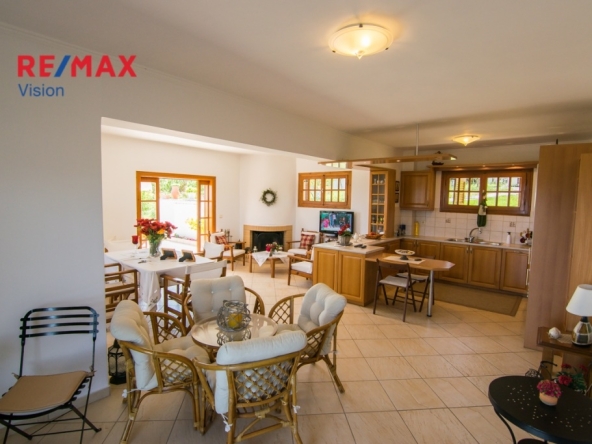 Akrata, Detached house For Sale, 279 sq.m., In Plot 1710 sq.m., Floor: Ground floor, 7 Bedrooms 3 Kitchen(s), 3 Bathroom(s), 2 WC, Heating: Autonomous, View: Mountain View + Sea view, Building Year: 1990, 6 parking(s), Features: Fireplace (3), BBQ, Airy, Frontage, Bright, Grass, Automatic Watering, Trees, Back yard (Garden), Cottage, Price: 600.000€. RE/MAX Vision Tel: 2610-622.077, 6907 650555 email: info@remax-vision.gr https://www.remax.gr/remax-vision